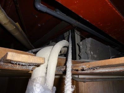 屋上から2階天井裏までは、パイプシャフトを通っていました。
